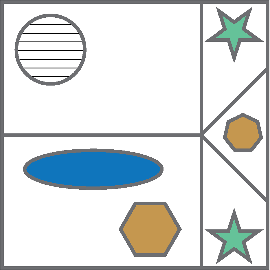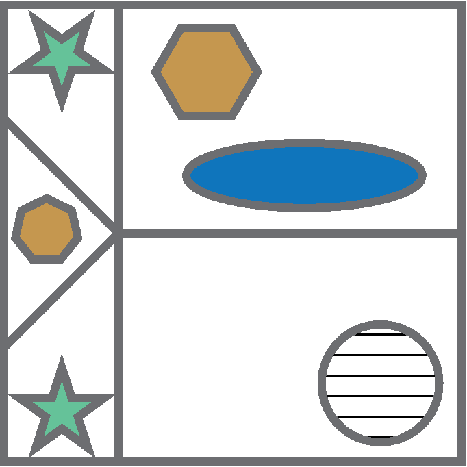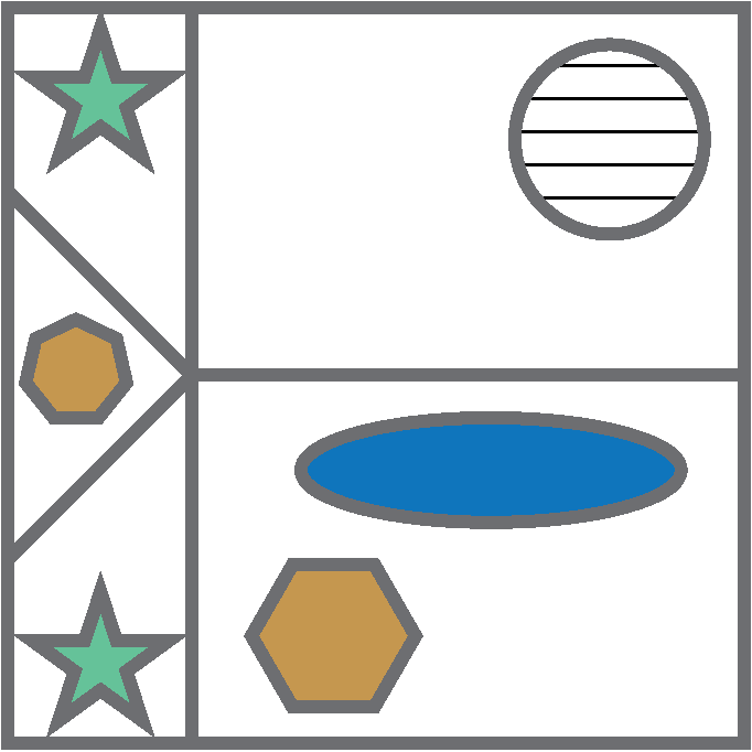 You may be asked to find shapes that are scaled and/or rotated and hidden within other shapes.