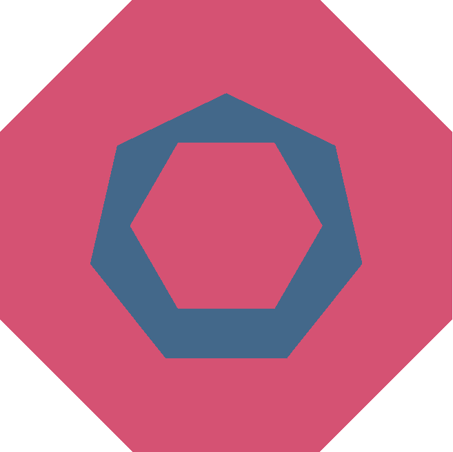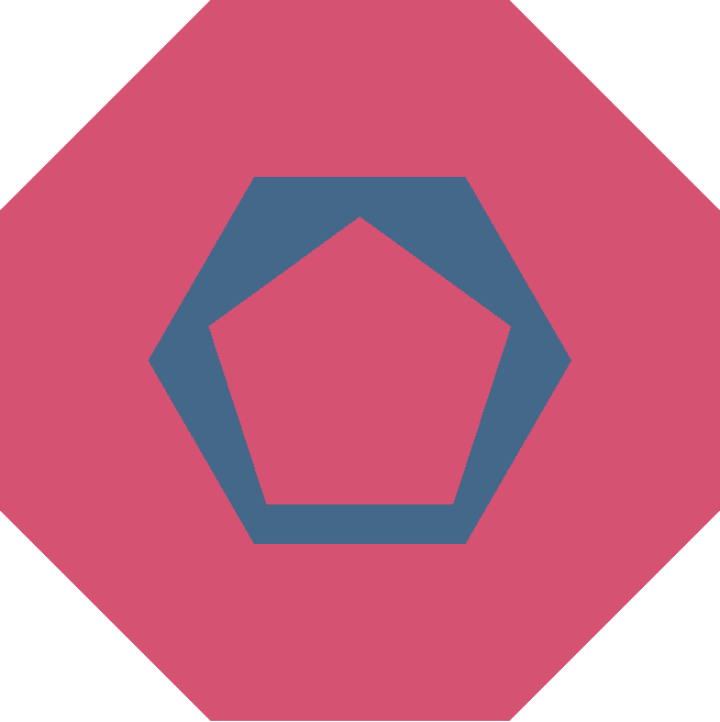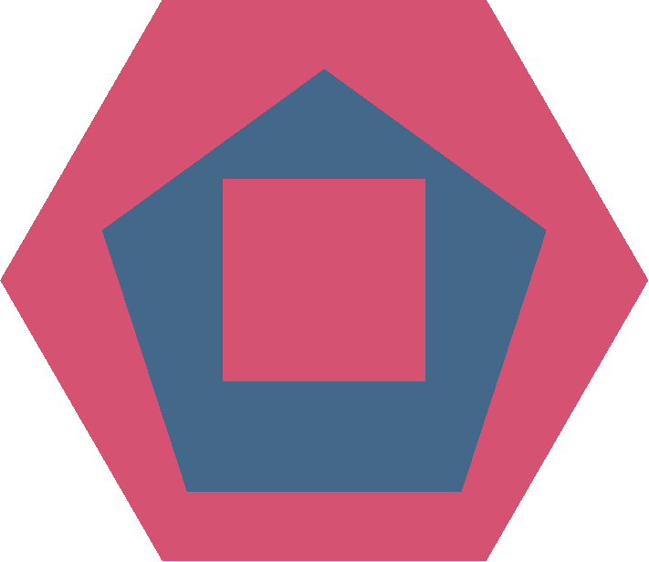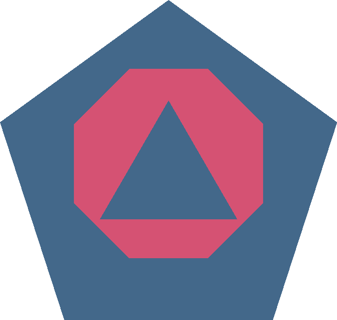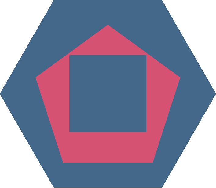 The outer shape is pink with an even number of vertices, the middle one, with an odd number of vertices is blue and the inner one with an even number is pink. This matches what we were expecting.